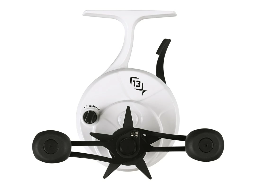 The 13 Fishing FreeFall Ghost Reel features the revolutionary FreeFall trigger that allows hard water anglers to hit specific depths, and get instant hookups by releasing the trigger in the target zone. Expect easy one-handed operation, smooth drag, and the perfect all-around gear ratio for shallow to mid-depth (5-50 ft.) ice fishing. No line twist, drop-speed control, and a tangle-free spool cap create a user-friendly design that simplifies line management and makes your time on the ice more enjoyable.