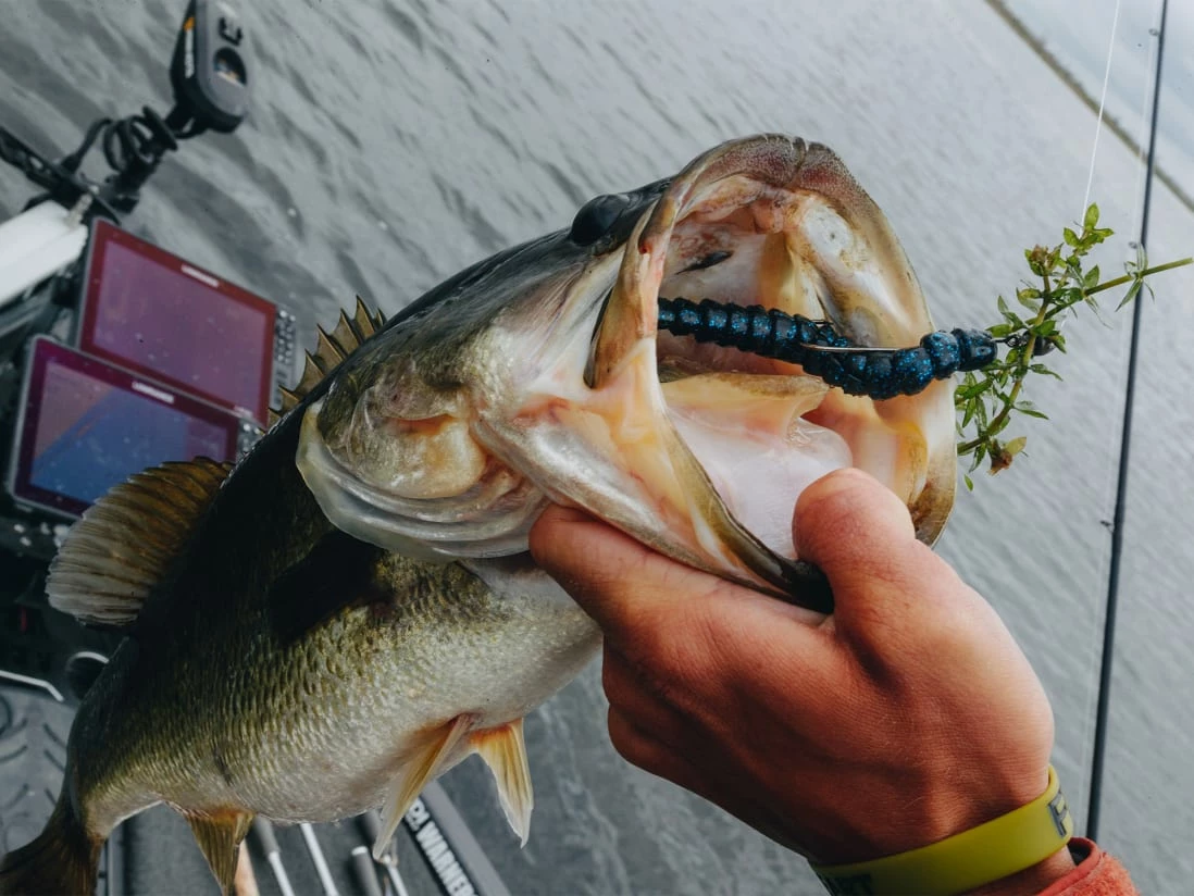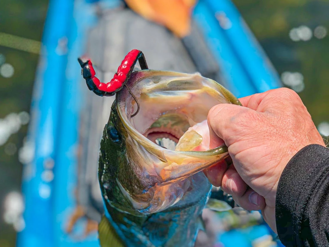 Pro Tips: Use the ExoRibbon when looking for a worm with lots of action, make sure to bury the hook point back into the body to prevent snags. When fishing it weightless, utilize a stop & go method to bring it past vegetation and any other structure. When bottom fishing it on a Texas or Carolina rig, hop or drag it along the bottom. Be sure to set the hook well, as the hook point has to go through the plastic and then penetrate the bass’ mouth.