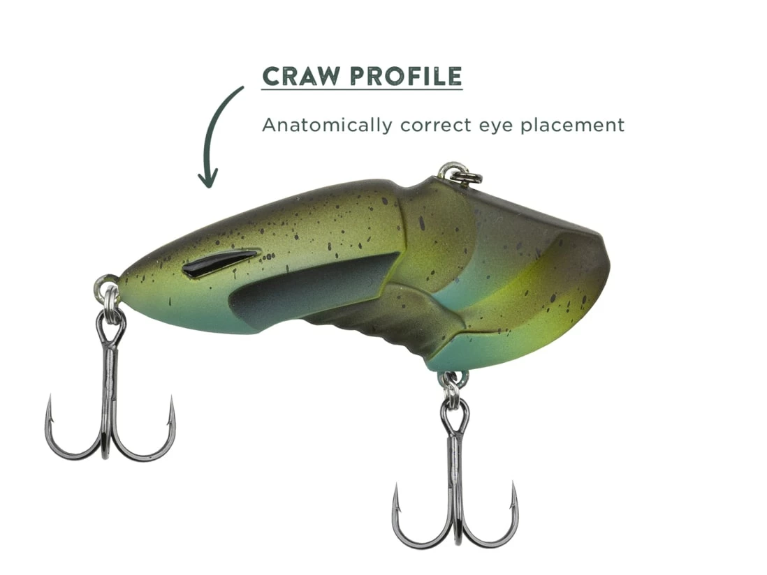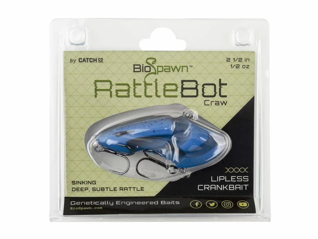 BioSpawn has moved into a new phase; the crankbait. The RattleBot is a lipless crank genetically engineered to imitate two universal bass snacks: The crawfish and the baitfish. The BioSpawn Rattlebot features two model options inspired by the natural look of crawfish and minnows. After conceptualizing, developing, lab testing, and finally catching fish, the BioSpawn Rattlebot is ready to ravage the water.