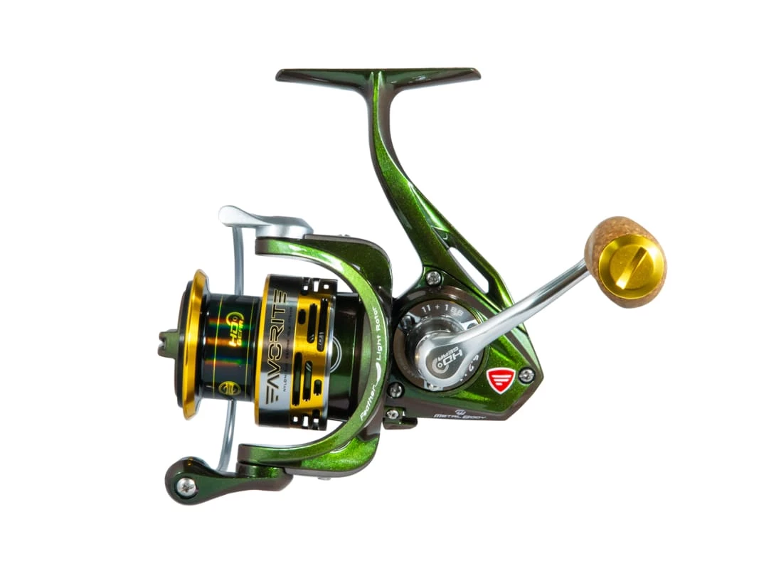 The Rush Spinning Reel features state-of-the-art engineering and is designed to deliver the ultimate in angling performance. Its lightweight aluminum-alloy body and side plate make a rigid, durable housing for the reel’s powerful, precision-cut gearset and 11+1 bearing system. A specially designed line roller and spool lip eliminate line twist as the reel’s slow oscillating movement ensures even line lay. With a 5.2:1 gear ratio and a head-turning anti-reverse, you get remarkable fish fighting power. Your spinning reel should offer trouble-free operation, smooth as silk cranking, and the power to subdue big fish—the Rush Spinning Reel from Favorite Fishing has you covered! Buy this high-performance spinning reel today!