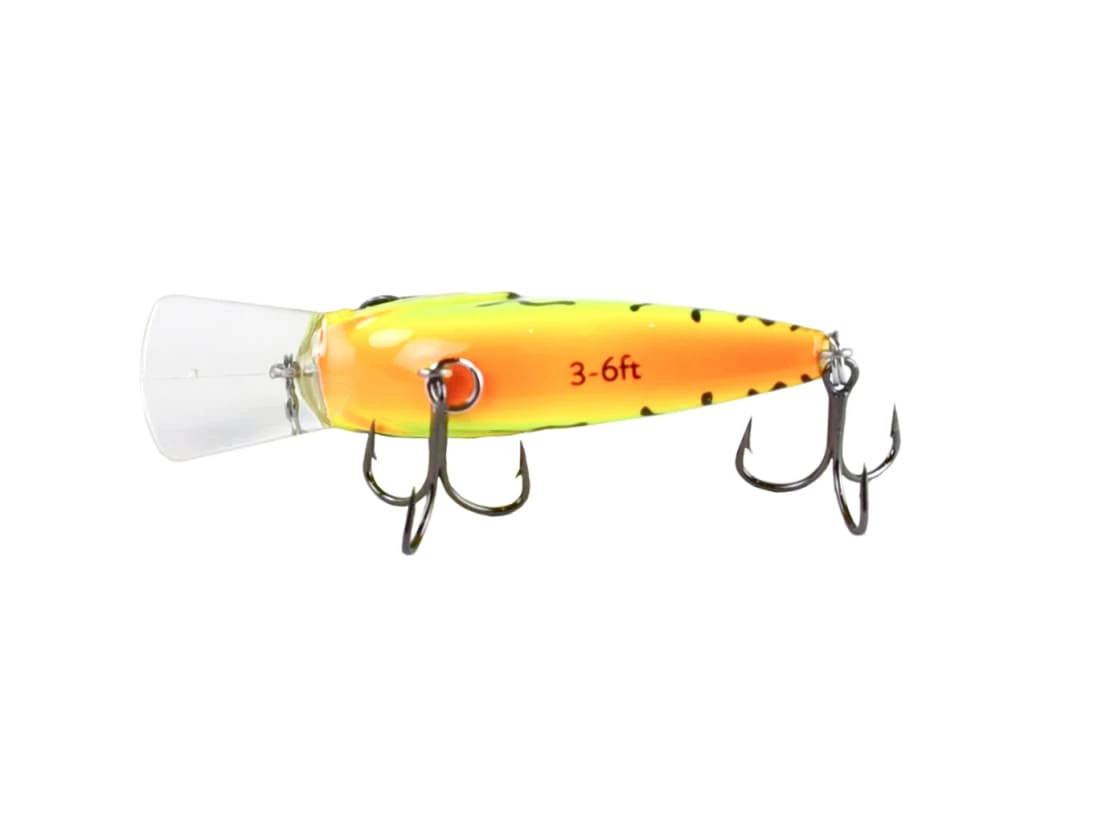 Googan Squad Crankbaits come with Mustad Triple Grip Hooks and their diving depth painted on the bottom of the bait.