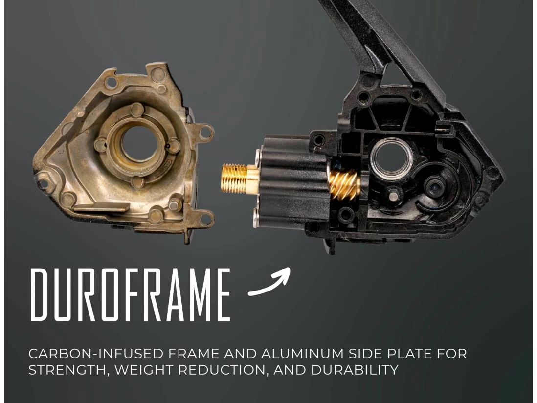 The Googan Gold Series Spinning reels are for the angler who demands keen attention to detail and unrivaled performance. These reels come built with the ToughTooth Custom Forged Aluminum Gears for longer lasting and smoother gearing as well as a Slow Oscillation System to allow for superior line management and improved casting distance. The carbon-infused frame and aluminum side plate create maximum strength, weight reduction, and improved durability, while the ball bearing and wave spring supported carbon fiber drag sytem provide top notch drag smoothness and reliability. Gold Series reels are also equipped with TopoGrip with VisiCore Rubberized handle knobs for superior feel and slip-reduction. Googan reels also pair to the CatchSmart system to simplify fishing for anglers of all experience levels. Available in 1000 and 2500 sizes.