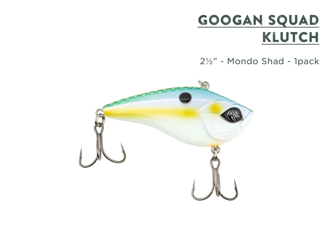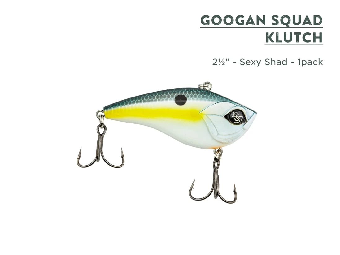 The Googan Squad Klutch is a lipless crankbait designed with a realistic and tight wobble to mimic swimming baitfish and fleeing crawfish. Fish the Googan Squad Klutch all year long, but this bait will crush in the Spring and Fall when bass are putting on the feedbag. In the spring, tie on Sriracha Craw Klutch to mimic the look of crawfish which bass are typically dialed in on. In the fall, a Sexy Shad patterned Klutch will be the deal for fish feeding on schools of baitfish.