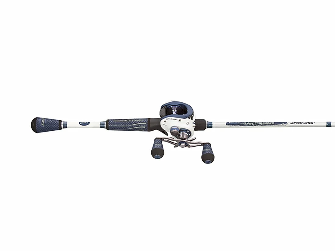 The Lews Mach Inshore SLP Baitcasting Combo is a saltwater and freshwater casting rig that gives you great performance at an affordable price. The reel features a one-piece lightweight SLP graphite frame; a machine forged, anodized, aluminum spool; and a low-profile, ergonomic shape. It’s got a silky-smooth feel when you turn the crank, thanks to 7-premium stainless-steel bearings, and you get a tunable braking system and adjustable cast control. The rod, carefully chosen for this combo by the experts at Lews, features a one-piece IM8 blank. Line shoots through the Microwave Guides with ease, so you can make long, accurate casts. When you choose Lews Mach Inshore SLP Baitcasting Combo, you get high-end performance and proven reliability at a price that won’t blow your budget. Add this rig to your collection today!