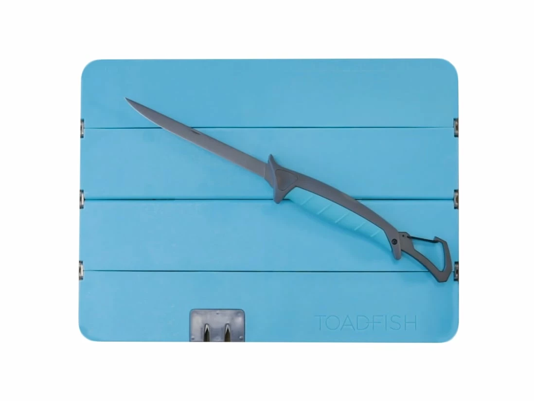 The Toadfish Stowaway System is a fillet knife and cutting board combo that packs up small but offers full-service cutting capabilities. The 7″ folding fillet knife features a titanium-coated blade and a long, ergonomic handle. The cutting board folds to a compact size and has a built-in knife sharpener featuring a carbide section to clean up dull edges and a ceramic section to restore any blade to factory-sharp condition. You can prep shore lunch like a pro guide with this incredibly handy knife and cutting board combo! Get the Toadfish Stowaway System now!